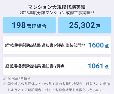 修繕工事専門会社として、業界トップクラスの工事実績を誇っています。全国各地に営業所を構えておりますので、幅広いエリアでの対応が可能です。有資格者も多数在籍しており、熟練の技術力と豊富なノウハウで、お客さまのマンションの資産価値を守ります。